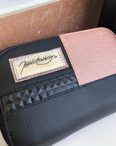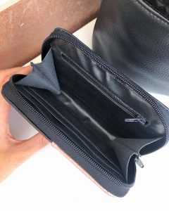 Mini denarnica Roza je dimenzij 15x10x2,5 cm. V notranjosti ima 4 žepke za kartice, 2 predalčka za gotovino in 1 žepek na zadrgo za drobiž.