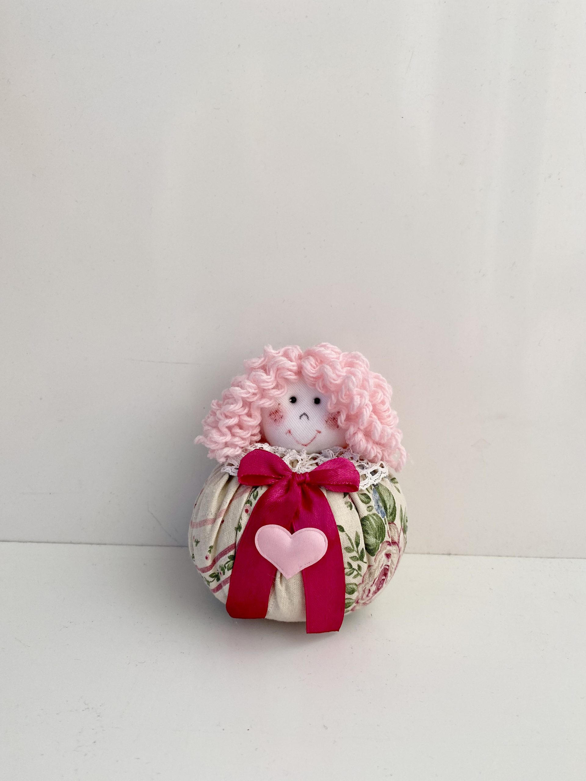 Velikost punčke je 10 cm, v celoti ročno izdelana in polnjena z aromatično sivko iz domačega vrta.