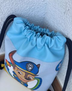 Otroški nahrbtnik iz umetnega usnja z motivom junaka Tačke na patrulji- Bron. Mere 33x25cm, nastavljive naramnice z vrvicami.