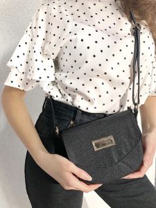 V velikosti: 19x17x5 cm, zapira se z magnetom in zadrgo. V notranjosti je podložena in ima žep z zadrgo. Pas je nastavljiv.