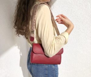 V velikosti 23x15x5 cm, zapira se z magnetom. V notranjosti je podložena in ima dva žepa. Dolžina pasa: 70 cm, širina: 5 cm. Torbica je ojačana z medvlogo.